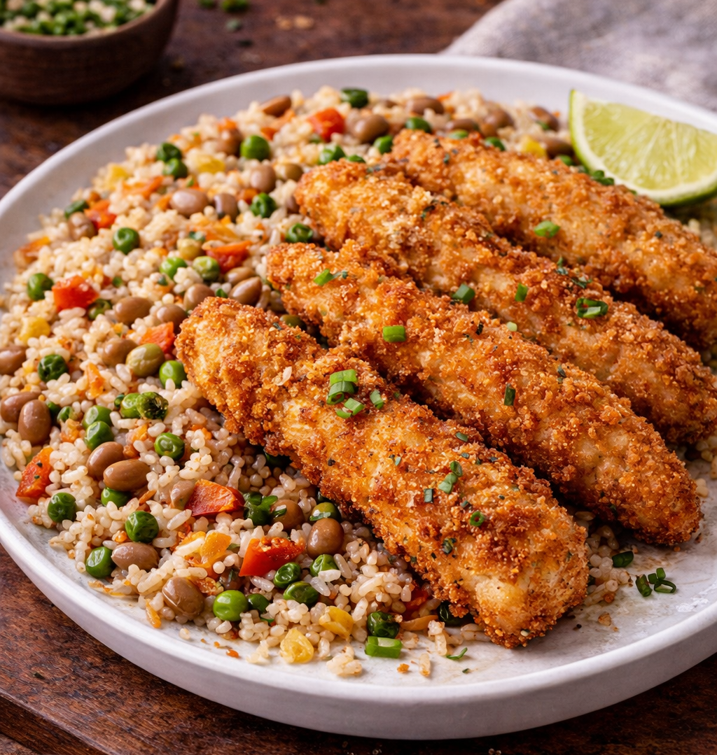 Peas ‘n Rice with Grouper Fingers